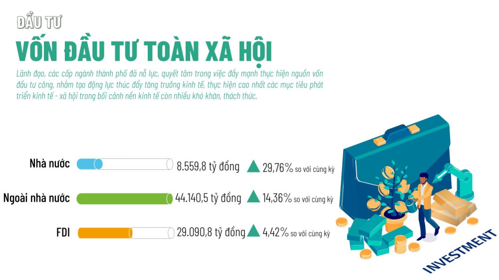 Hoạt động du lịch trên địa bàn có nhiều điểm sáng; nhu cầu mua sắm, sử dụng các dịch vụ vui chơi, giải trí, ăn uống, lưu trú, lữ hành và vận tải của người dân thành phố tăng so với cùng kỳ. Mức tăng trưởng này cho thấy cuộc sống của người dân dần đi vào ổn định hơn sau đại dịch Covid-19.