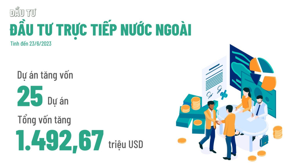 Vốn đầu tư khu vực đầu tư trực tiếp nước ngoài (FDI) ước 06 tháng/2023 đạt trên 1,811 tỷ USD, bằng 164,8% so với cùng kỳ năm 2022. Trong đó, cấp mới 37 dự án đầu tư với số vốn cấp mới là 315,2 triệu USD; điều chỉnh tăng vốn đầu tư 25 dự án với số vốn đầu tư tăng thêm hơn 1,492 tỷ USD. Tính lũy kế đến 23/6/2022, Hải Phòng có 872 dự án còn hiệu lực với tổng vốn đầu tư gần 24 tỷ USD.
