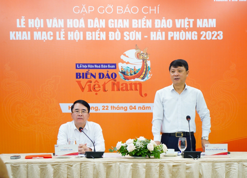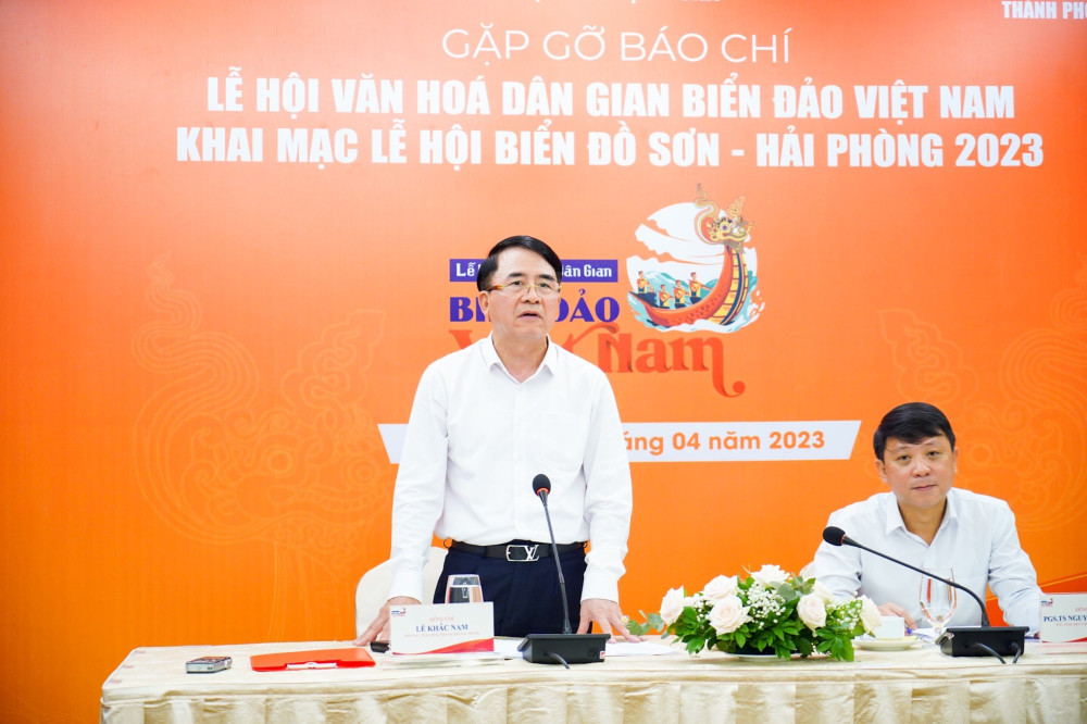 Sáng 22/4, tại Khách sạn Pearl River, Bộ Văn hóa Thể thao và Du lịch phối hợp Bộ Biên tập Tạp chí Cộng Sản và Thành ủy, UBND thành phố Hải Phòng tổ chức họp báo cung cấp thông tin về Lễ hội Văn hóa dân gian Biển đảo Việt Nam, Khai mạc Lễ hội Biển Đồ Sơn-Hải Phòng 2023. Đồng chí Lê Khắc Nam, Phó Chủ tịch UBND thành phố và PGS.TS Nguyễn Ngọc Hà, Phó Tổng Biên tập Tạp chí Cộng Sản đồng chủ trì Hội nghị.