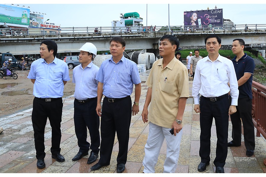 Đồng chí Nguyễn Văn Tùng, Chủ tịch UBND thành phố kiểm tra công tác giải phóng mặt bằng công viên cây xanh Tam Bạc. Ảnh: Đức Lê