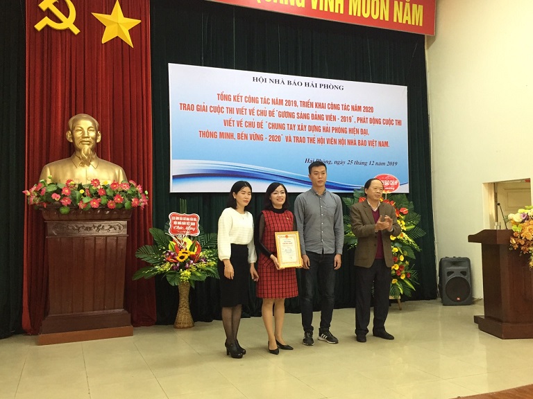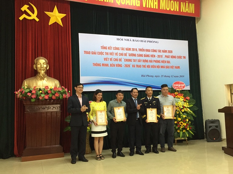 Sáng 25-12, Hội Nhà báo Hải Phòng đánh giá kết quả hoạt động năm 2019, triển khai công tác năm 2020; trao giải cuộc thi viết về chủ đề “Gương sáng Đảng viên năm 2019”; đồng thời phát động cuộc thi viết về chủ đề “Chung tay xây dựng Hải Phòng hiện đại, thông minh, bền vững năm 2020”. Đến dự có đồng chí: Đào Văn Hoàn, Phó Trưởng ban Ban Tuyên giáo Thành ủy; các Tổng Biên tập Báo Hải Phòng, Báo An ninh Hải Phòng, Giám đốc Đài PTTH Hải Phòng cùng đông đảo hội viên Hội Nhà báo thành phố.