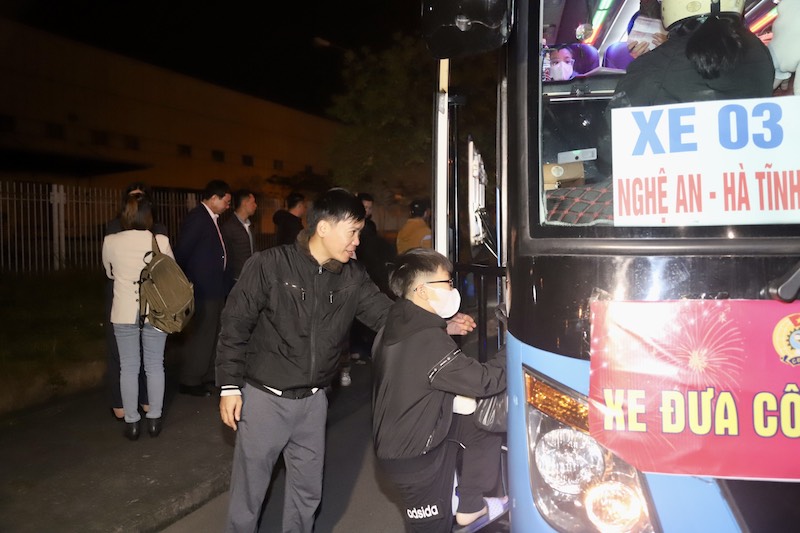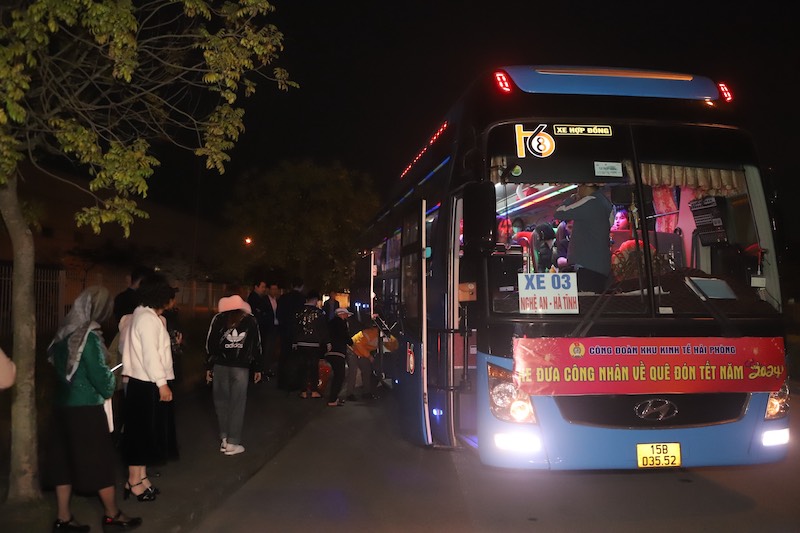 Sáng 7/2 (tức ngày 28 âm lịch), 16 chuyến xe do Liên đoàn Lao động thành phố và Công đoàn khu kinh tế Hải Phòng phối hợp tổ chức đã đưa hơn 700 công nhân lao động ngoại tỉnh như Nghệ An, Thanh Hoá, Sơn La… làm việc tại các khu công nghiệp Nomura, Tràng Duệ, VSIP về quê đón tết nguyên đán Giáp Thìn 2024.
