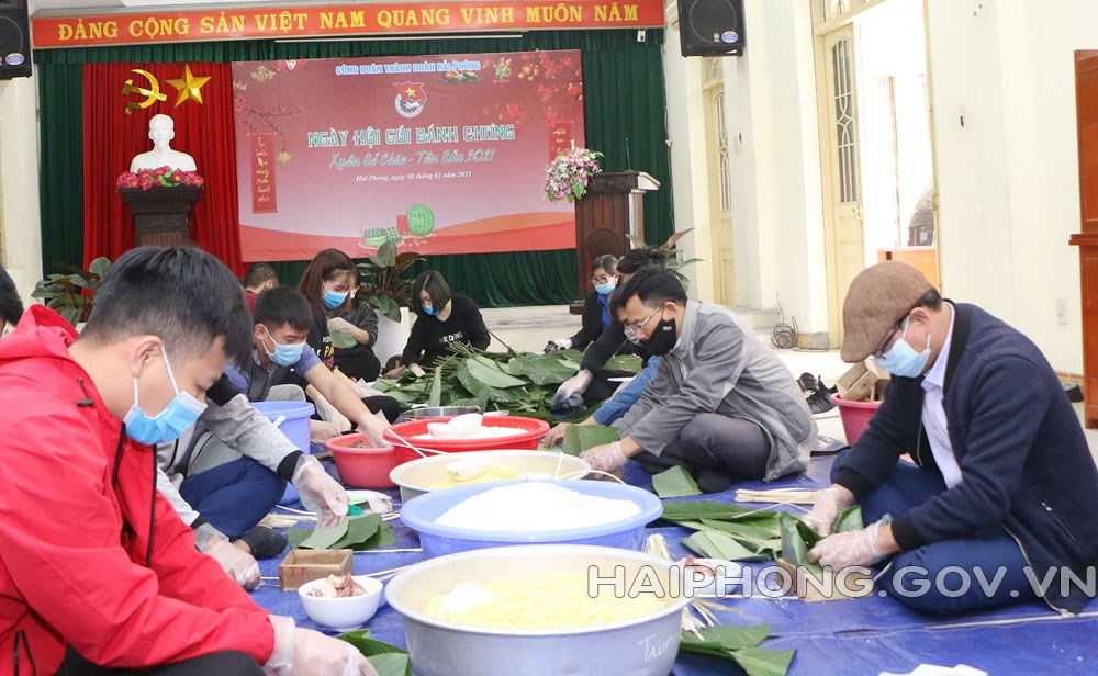 Thông qua chương trình “Ngày hội gói bánh chưng“, Thành đoàn Hải Phòng dự kiến sẽ dành tặng 2.000 chiếc bánh chưng xanh, 200kg hành muối và 100 giò thịt dành tặng cho những điểm trực chốt phòng, chống dịch bệnh COVID-19 trên địa bàn thành phố. Đây là hoạt động thể hiện sự đoàn kết, tương thân, tương ái, chia sẻ Tết cổ truyền Tân Sửu 2021 ấm áp nghĩa tình, hướng tới một năm mới bình an, tốt đẹp.