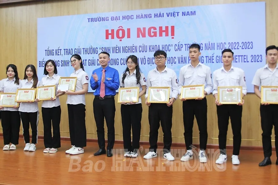 Sáng 26/5, Trường đại học Hàng hải Việt Nam tổ chức hội nghị tổng kết, trao giải thưởng “Sinh viên nghiên cứu khoa học” cấp trường năm học 2022-2023; biểu dương sinh viên đoạt giải cao trong Cuộc thi vô địch tin học văn phòng thế giới-Viettel 2023.