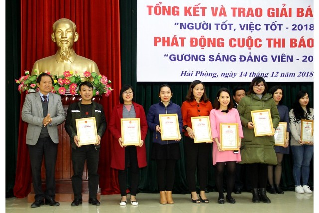 Năm 2018, Hội Nhà báo thành phố tổ chức cuộc thi báo chí với chủ đề “Người tốt, việc tốt” , thu hút gần 1.000 tác phẩm báo chí tham dự. Nổi bật, 250 tác phẩm đăng tải trên Báo Hải Phòng (cả báo in và báo điện tử), gần 300 bài ở các thể loại truyền hình và phát thanh thuộc Đài Phát thanh-Truyền hình Hải Phòng. Từ 64 tác phẩm thuộc 8 cơ quan báo chí lọt vào vòng chung khảo, ban tổ chức trao 2 giải nhất tặng tác phẩm “Trưởng thôn, Bí thư chi bộ 8X thời 4.0- “Trẻ hóa” tác phong, đổi mới cách làm của nhóm phóng viên Phòng Chính trị- Xã hội (Báo Hải Phòng) và “Ông Cách điên” của nhóm tác giả Thu Trang- Hải Sơn- Mạnh Luân-Xuân Huy (Đài PT-TH Hải Phòng); cùng 4 giải nhì, 6 giải ba và 8 giải khuyến khích. Báo Hải Phòng vinh dự đọat 1 giải nhất, 2 giải nhì, 3 giải ba và 2 giải khuyến khích.