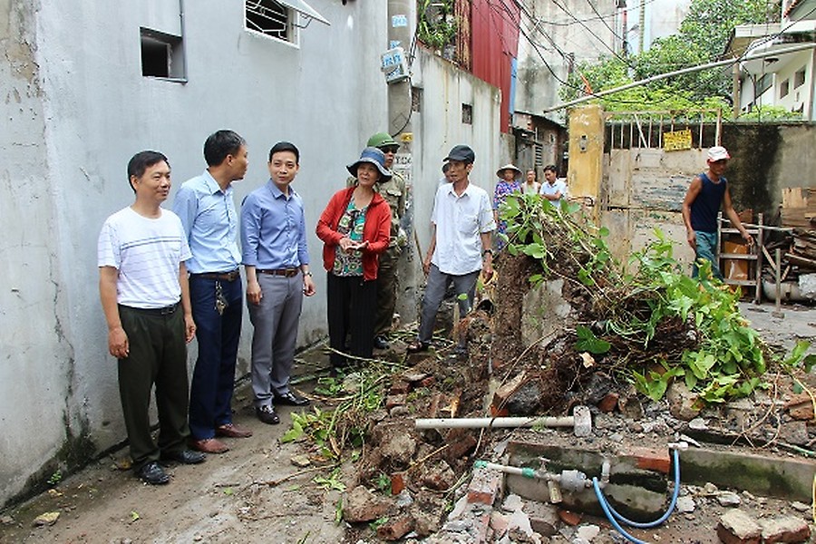 Lãnh đạo phường Trại Chuối kiểm tra tiến độ phá dỡ ngõ 210 Bãi Sậy