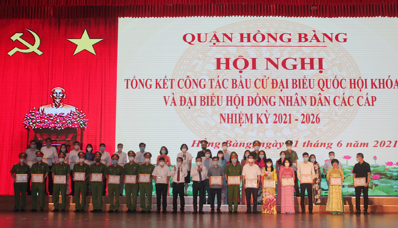 Nhân dịp này, có 2 tập thể, 2 cá nhân được nhận Bằng khen của UBND thành phố; 41 tập thể, 220 cá nhân có thành tích xuất sắc trong công tác bầu cử đại biểu Quốc hội khóa XV và đại biểu HĐND các cấp nhiệm kỳ 2021-2026 được nhận Giấy khen của UBND quận Hồng Bàng.