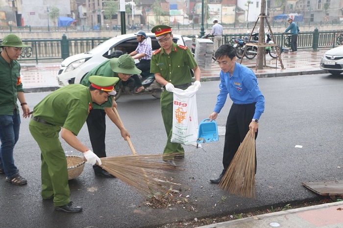 ĐVTN tham gia dọn dẹp vệ sinh tại các tuyến phố