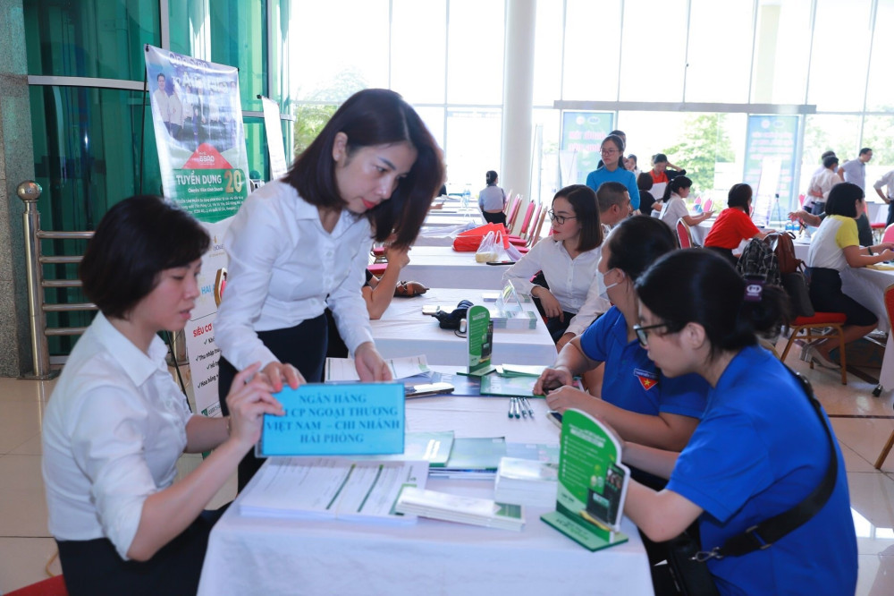 Sáng 28/10, UBND quận Hồng Bàng phối hợp với Trung tâm giới thiệu việc làm thành phố tổ chức Phiên giao dịch việc làm và tư vấn hướng nghiệp năm 2023. Tham dự có đại diện lãnh đạo các doanh nghiệp, cơ quan, đoàn thể, học sinh, sinh viên và người lao động trên địa bàn quận Hồng Bàng.