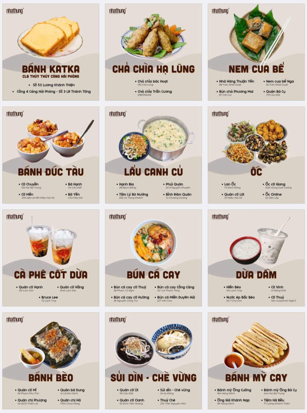 | 6 | Bánh đa cua | Ngõ 195 Cầu Đất | 0906081227 | Phạm Tuấn Thành |