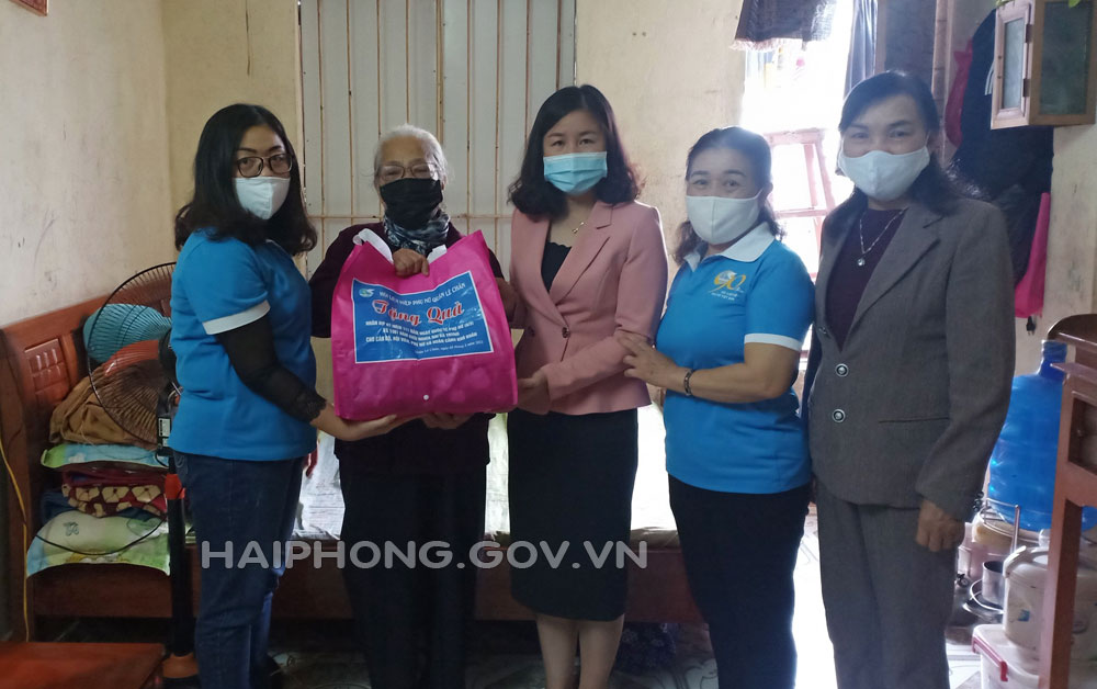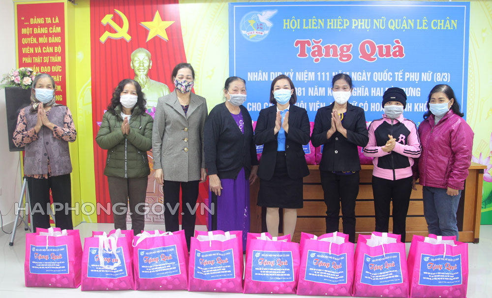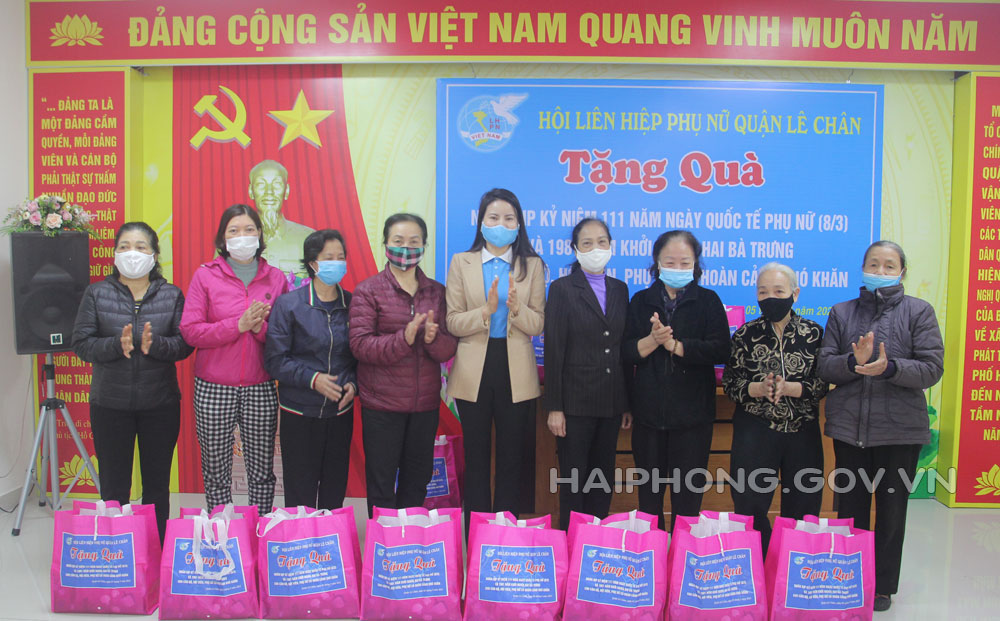 Hội LHPN quận Lê Chân đã đến trực tiếp tại nhà các cán bộ, hội viên phụ nữ để tặng quà và thăm hỏi tình hình sức khỏe, đời sống của các gia đình hội viên phụ nữ có hoàn cảnh khó khăn; mong muốn các chị em hội viên, cán bộ Hội sẽ tiếp tục phát huy tính năng động, sáng tạo của phụ nữ thời hiện đại, nỗ lực, cố gắng vươn lên trong cuộc sống, góp phần xây dựng gia đình ấm no hạnh phúc. Đồng thời, yêu cầu cán bộ, hội viên phụ nữ cần tích cực tuyên truyền, vận động người thân chấp hành tốt quy định về phòng, chống dịch bệnh COVID-19.