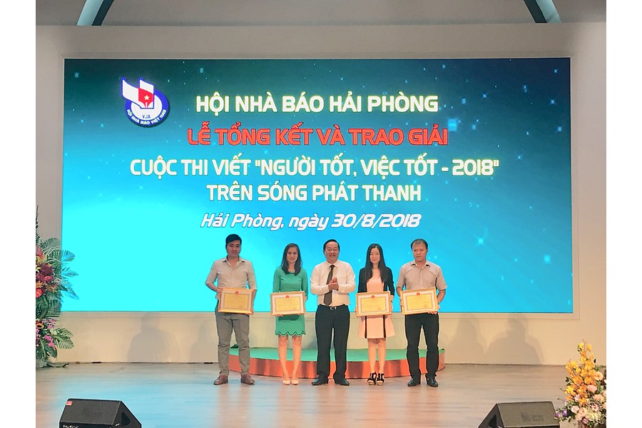 Cuộc thi viết về chủ đề “Người tốt-Việc tốt 2018” trên sóng phát thanh khối đài quận, huyện do Hội Nhà báo thành phố phát động thu hút 17 tác phẩm đến từ 6 đài phát thanh quận, huyện: Tiên Lãng, An Lão, Kiến Thụy, Cát Hải, Đồ Sơn, Kiến An. Với tác phẩm “Thợ săn chuyên nghiệp trở thành người bảo vệ rừng”, tác giả Hoàng Tản (Đài Phát thanh huyện Cát Hải) xuất sắc đoạt giải nhất cuộc thi. Ban tổ chức cũng trao 1 giải nhì, 1 giải ba và 3 giải khuyến khích tặng các tác giả.