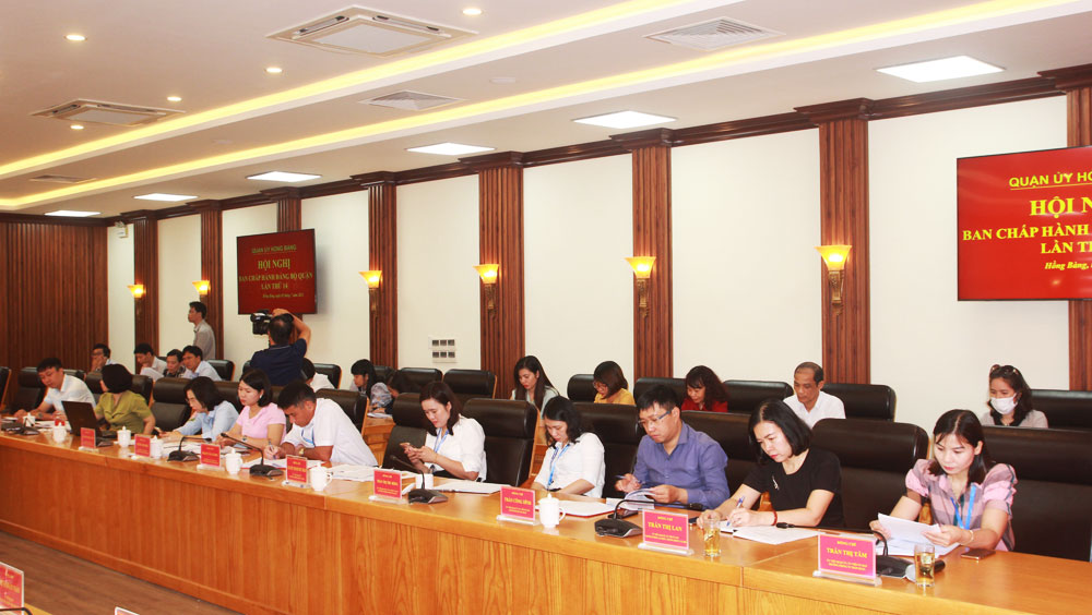 Về nhiệm vụ 6 tháng cuối năm, Quận ủy Hồng Bàng đề ra 14 nhóm nhiệm vụ, giải pháp thực hiện, trong đó: Chú trọng hơn nữa các giải pháp phát triển kinh tế; quan tâm động viên, rà soát, đánh giá hoạt động của các doanh nghiệp, hộ kinh doanh. Quản lý tốt các nguồn thu, đảm bảo kế hoạch thu ngân sách và thực hiện kỷ cương trong quản lý và điều hành thu, chi ngân sách. Tập trung thực hiện đồng bộ các giải pháp nhằm nâng cao kết quả điểm số, xếp hạng năng lực cạnh tranh (DDCI) của quận trong năm 2022. Tiếp tục nghiên cứu phát triển kinh tế đêm, phố đi bộ, tạo tiền đề chuyển dịch cơ cấu kinh tế sang thương mại, dịch vụ. Tiếp tục cụ thể hoá các nhiệm vụ, giải pháp thực hiện chuyển đổi số, an toàn an ninh mạng và cải cách hành chính quận, trọng tâm là việc rà soát, thực hiện các Bộ Chỉ số theo chỉ đạo của thành phố. Tiếp tục rà soát, đơn giản hoá thủ tục hành chính, kịp thời cập nhật, bổ sung phần mềm 1 cửa điện tử; tích cực sử dụng chữ ký số. Tăng cường tuyên truyền, vận động, hướng dẫn tổ chức, cá nhân sử dụng dịch vụ công trực tuyến mức độ 3 trở lên.