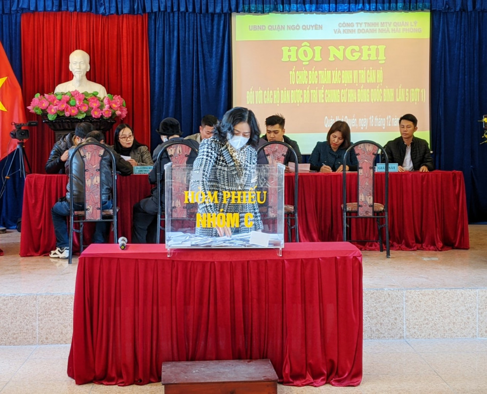 Chiều 18/12, tại trụ sở UBND phường Đồng Quốc Bình, UBND quận Ngô Quyền phối hợp với Công ty TNHH MTV Quản lý và kinh doanh Nhà Hải Phòng, Sở Xây dựng tổ chức bốc thăm xác định vị trí căn hộ lần thứ 5 (đợt 1) đối với các hộ dân được quay trở lại chung cư HH4 Đồng Quốc Bình.