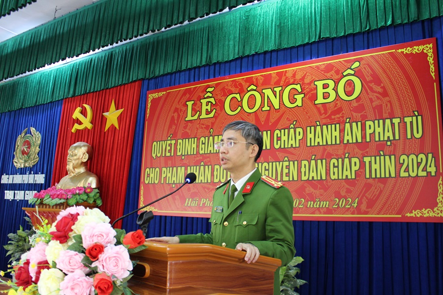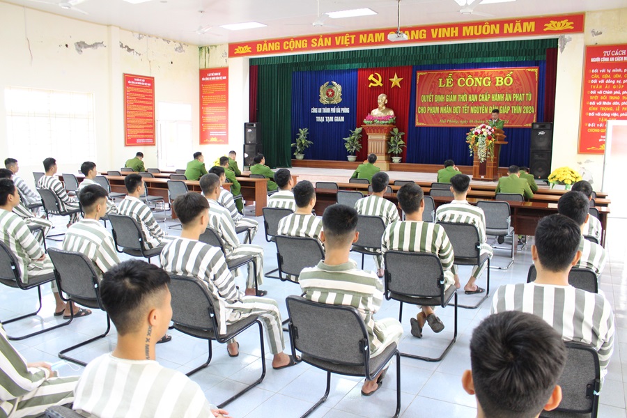 Sáng ngày 6/2/2023, tại Trại tạm giam CATP Hải Phòng diễn ra lễ công bố Quyết định giảm thời hạn chấp hành án phạt tù cho phạm nhân đợt Tết Nguyên đán Giáp Thìn 2024.