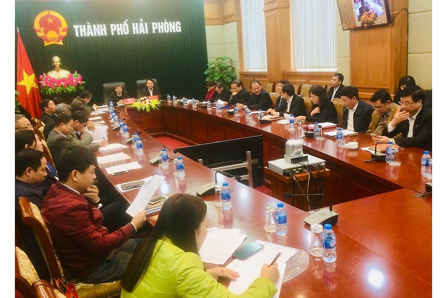 Quang cảnh hội nghị tại điểm cầu Hải Phòng sáng 18-1.