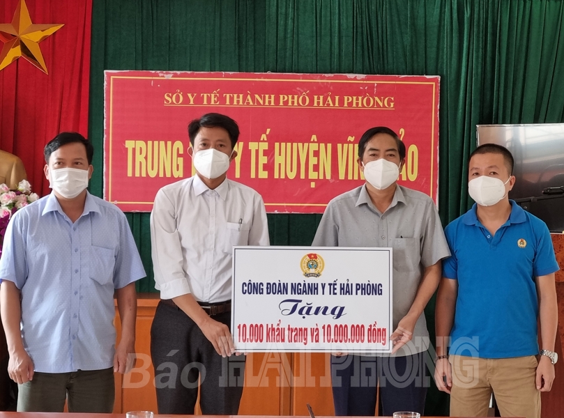 Nhân dịp này, Sở Y tế trao tặng Trung tâm Y tế huyện Vĩnh Bảo 10 triệu đồng và 10 nghìn khẩu trang y tế phục vụ công tác phòng, chống dịch./.