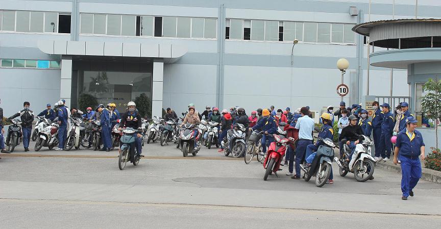 Công nhân KCN Nomura trong ngày đầu tiên làm việc sau dịp Tết nguyên đán