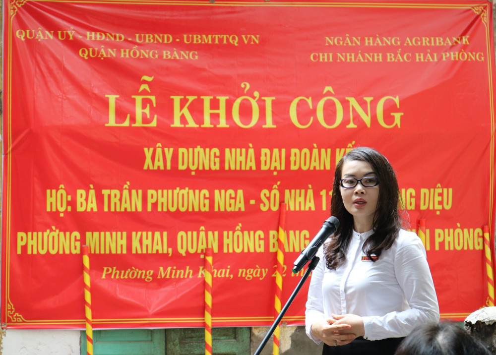 Phát biểu tại lễ khởi công, Phó Giám đốc Agribank chi nhánh Bắc Hải Phòng Hồ Thị Hồng Thắm chia sẻ: “Những năm qua, với sự cố gắng nỗ lực và quyết tâm cao của toàn thể cán bộ viên chức, Agribank đã vươn lên và giữ vững vị trí ngân hàng thương mại hàng đầu Việt Nam về tài sản, quy mô hoạt động cũng như nguồn nhân lực.