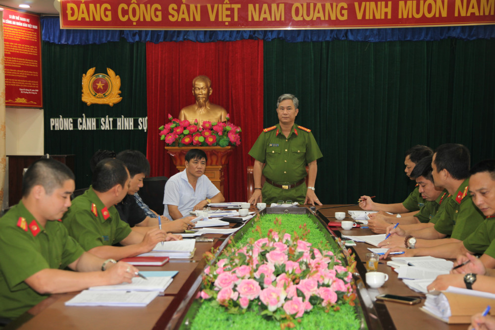 Đại tá Lê Hồng Thắng họp chỉ đạo các tổ đội điều tra phá án