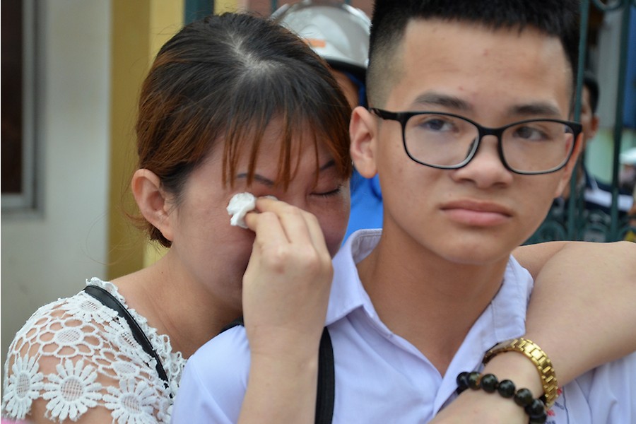 Nhiều phụ huynh bật khóc khi con vừa ra khỏi phòng thi