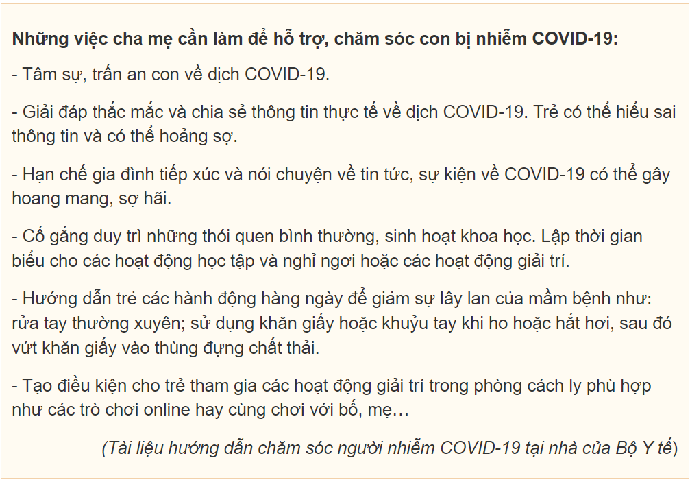 2. Khi chăm sóc, điều trị tại nhà cho trẻ mắc COVID-19 cần lưu ý
