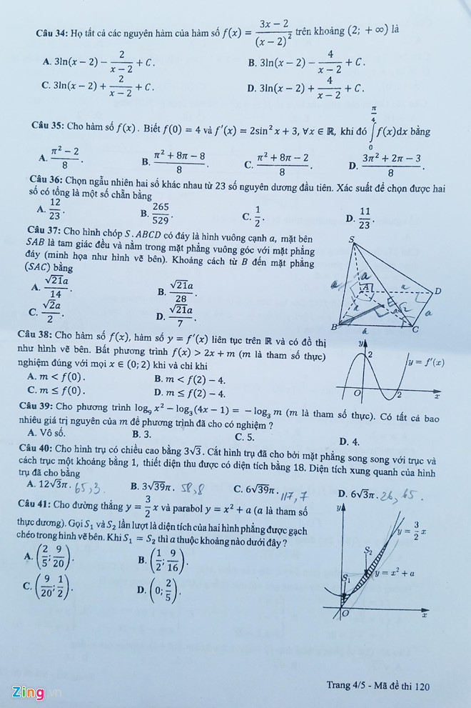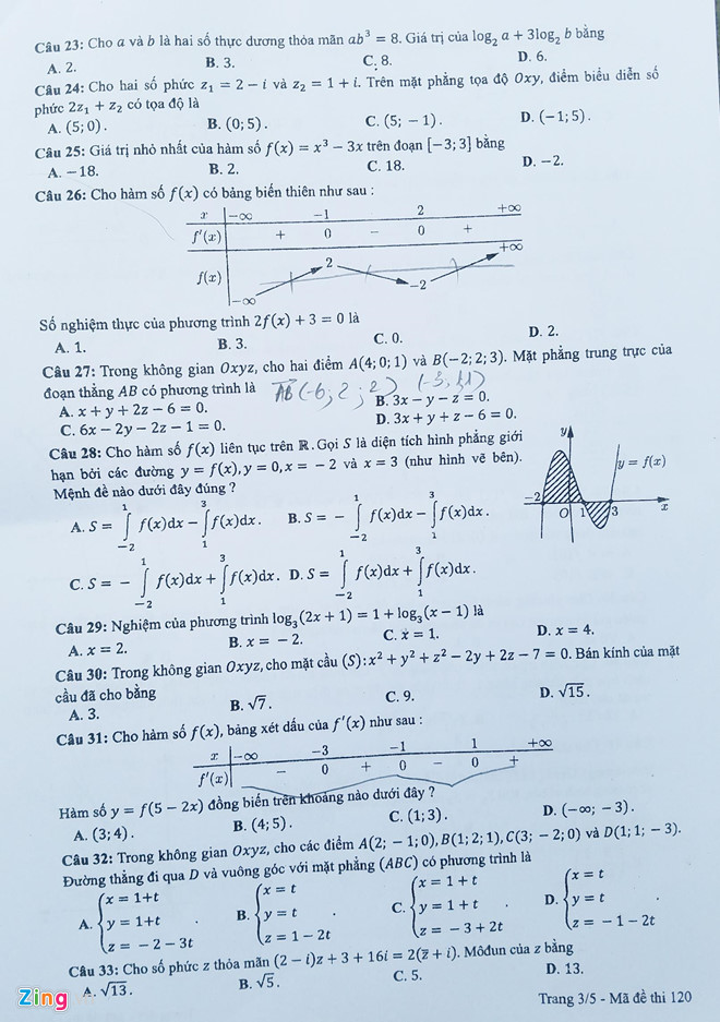 Chiều 25/6, thí sinh kết thúc 90 phút làm bài thi môn Toán, với 50 câu hỏi. Dưới đây là đề thi và gợi ý đáp án môn Toán mã 120.