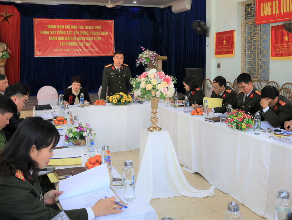 Chiều 11-12, Ban Chỉ đạo 799 thành phố do Thượng tá Lê Trung Sơn – Phó Giám đốc CATP, trưởng Ban chỉ đạo 799 thành phố làm trưởng đoàn tổ chức khảo sát tại phường Cát Dài, quận Lê Chân, là địa phương có thành tích xuất sắc trong phong trào Toàn dân bảo vệ ANTQ năm 2019.