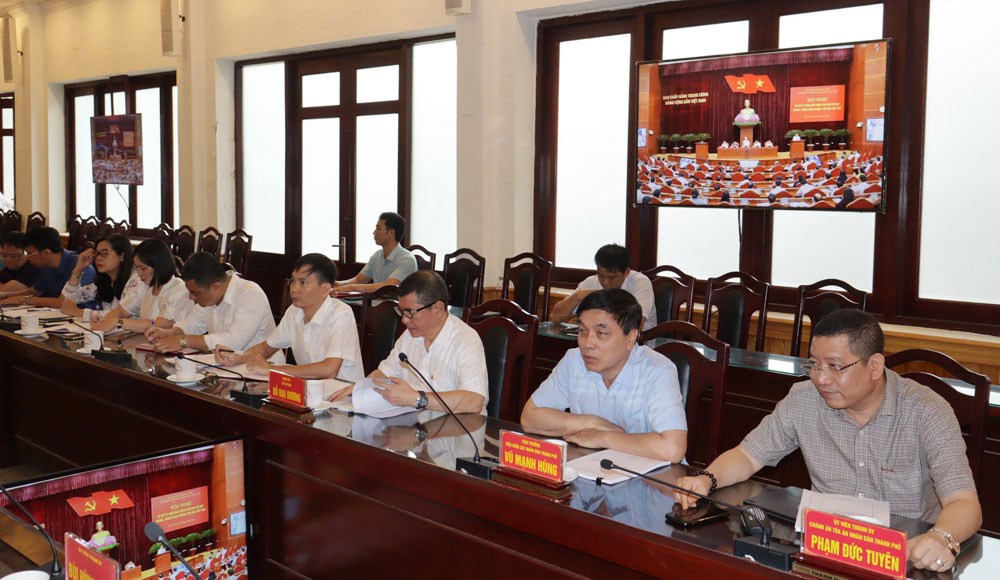 Dự tại điểm cầu thành phố có các đồng chí: Nguyễn Đình Chuyến, Ủy viên Ban Thường vụ Thành ủy, Chủ nhiệm Ủy ban Kiểm tra Thành ùy; Đào Trọng Đức, Ủy viên Ban Thường vụ Thành ủy, Trưởng Ban Tổ chức Thành ủy và thành viên Ban Chỉ đạo phòng, chống tham nhũng, tiêu cực thành phố.