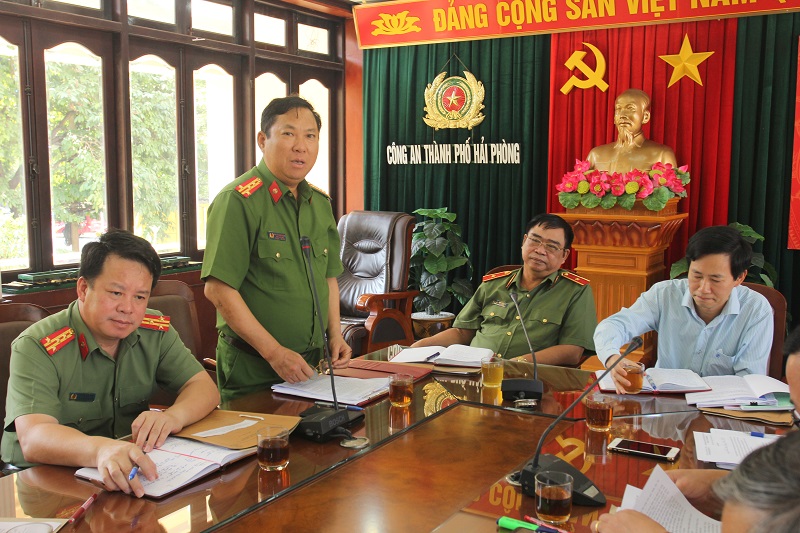 Đại tá Nguyễn Văn Coỏng, Phó giám đốc CATP báo cáo tại buổi làm việc