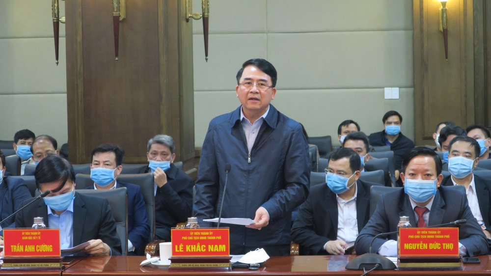 Phát biểu tại buổi làm việc, Phó Chủ tịch UBND thành phố Lê Khắc Nam cho biết: thành phố Hải Phòng đã triển khai đồng bộ, quyết liệt nhiều giải pháp để ngăn chặn dịch COVID-19 xâm nhập vào thành phố. Đến thời điểm này thành phố đã nỗ lực và đạt được nhiều kết quả đáng ghi nhận, nhờ đó kinh tế – xã hội ổn định, tổng thu ngân sách đạt chỉ tiêu đề ra. Phó Chủ tịch UBND thành phố cũng thông tin về những công tác phòng chống dịch cụ thể thành phố đã triển khai trong thời gian gần đây trước tình hình xuất hiện ca bệnh liên quan đến Bệnh viện Trẻ em Hải Phòng.