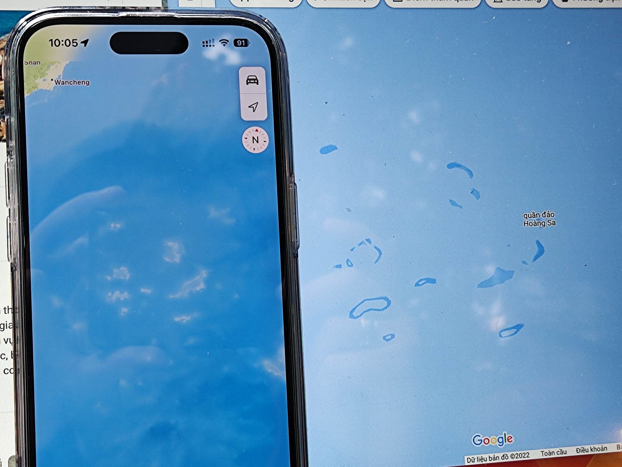 Cụ thể, tới bản iOS 16.1 (mới nhất tính tới cuối tháng 11.2022), Apple Maps vẫn không hiển thị hai quần đảo Hoàng Sa và Trường Sa thuộc chủ quyền Việt Nam. Khu vực này trên một số ứng dụng bản đồ khác của Google hay Bings đều thể hiện đầy đủ cùng vùng Biển Đông.