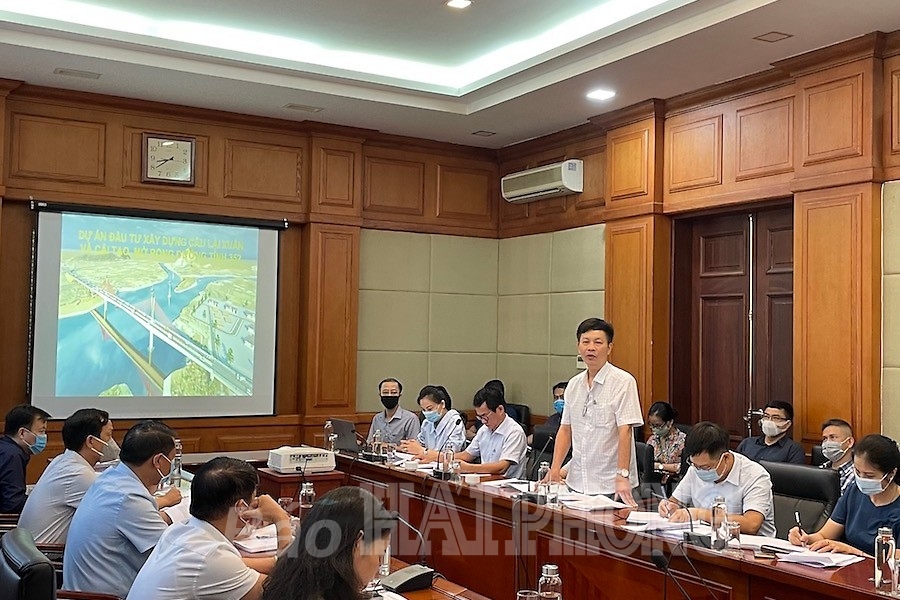 Tại cuộc làm việc, các sở, ngành, địa phương báo cáo chủ trương đầu tư 6 dự án gồm: Dự án đầu tư xây dựng cầu Lại Xuân và tuyến đường hai đầu cầu, cải tạo, mở rộng đường tỉnh 352; dự án đầu tư cải tạo đường 359 đoạn từ cầu Bính đến xã Trung Hà, huyện Thủy Nguyên; dự án đầu tư cải tạo đường thị trấn Minh Đức; dự án đầu tư hạ tầng kỹ thuật khu tái định cư phục vụ giải phóng mặt bằng sân golf Hải Phòng Sakura Club tại huyện An Lão; dự án đầu tư xây dựng cầu vượt sông Hóa và đoạn tuyến qua Hải Phòng của tuyến đường bộ từ thành phố Thái Bình đi cầu Nghìn; dự án đầu tư xây dựng nút giao khác mức tại ngã tư đường Tôn Đức Thắng – Máng Nước – Quốc lộ 5.