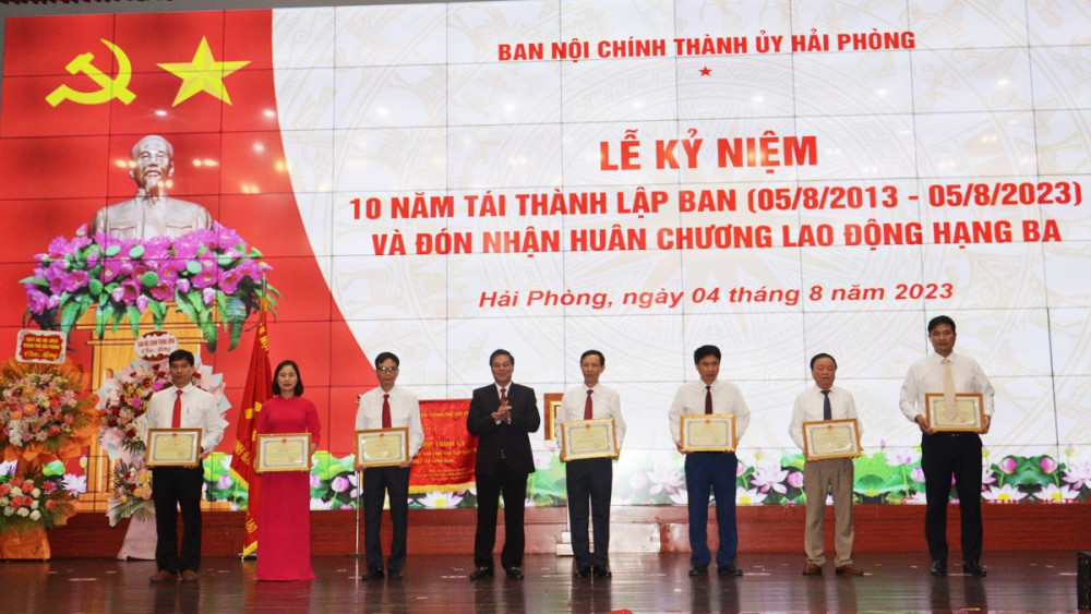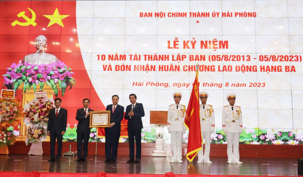 Tại Lễ kỷ niệm, Ban Nội chính Thành ủy Hải Phòng được Chủ tịch nước tặng thưởng Huân chương Lao động hạng Ba vì đã có thành tích xuất sắc trong công tác tham mưu thực hiện nhiệm vụ nội chính, phòng, chống tham nhũng, tiêu cực và cải cách tư pháp trên địa bàn thành phố Hải Phòng.