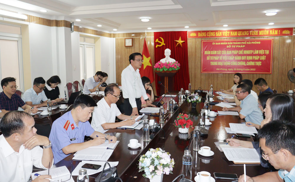 Chiều 20/9, Ban Pháp chế HĐND thành phố làm việc với Sở Tư pháp, giám sát việc chấp hành các quy định pháp luật trong hoạt động công chứng, chứng thực lĩnh vực dân sự trên địa bàn thành phố Hải Phòng.