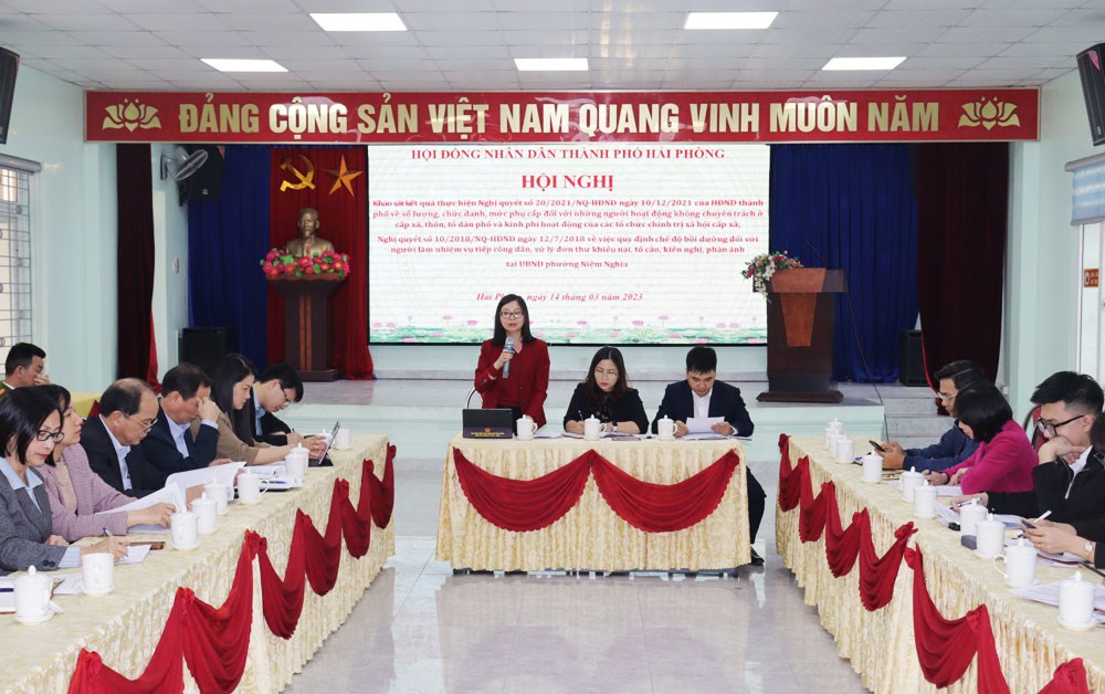 Tại cuộc làm việc, quận Lê Chân đề nghị HĐND thành phố quan tâm, điều chỉnh tăng hệ số chi phụ cấp đối với những người hoạt động không chuyên trách ở tổ dân phố; không nên chi theo hình thức chấm công; hỗ trợ kinh phí đối với các chi hội trưởng các chi hội đoàn thể để động viên cơ sở, góp phần hoàn thành tốt nhiệm vụ của địa phương.