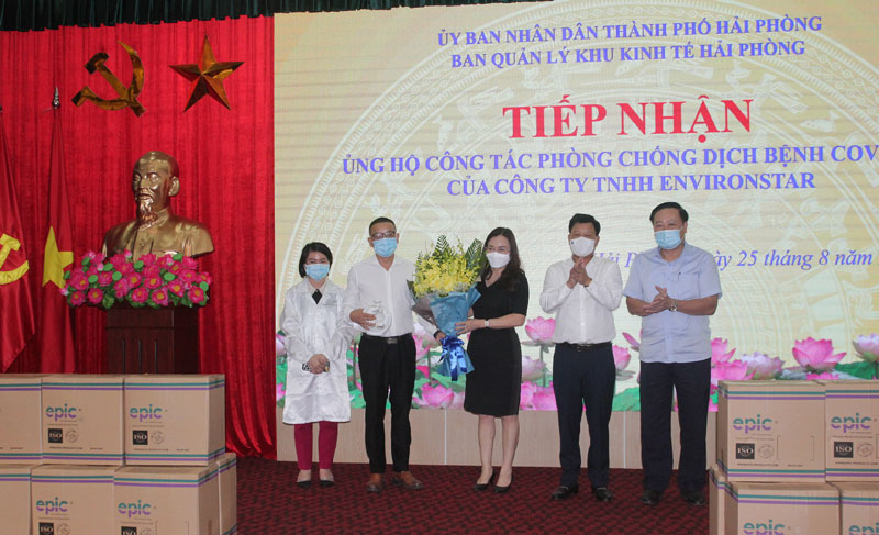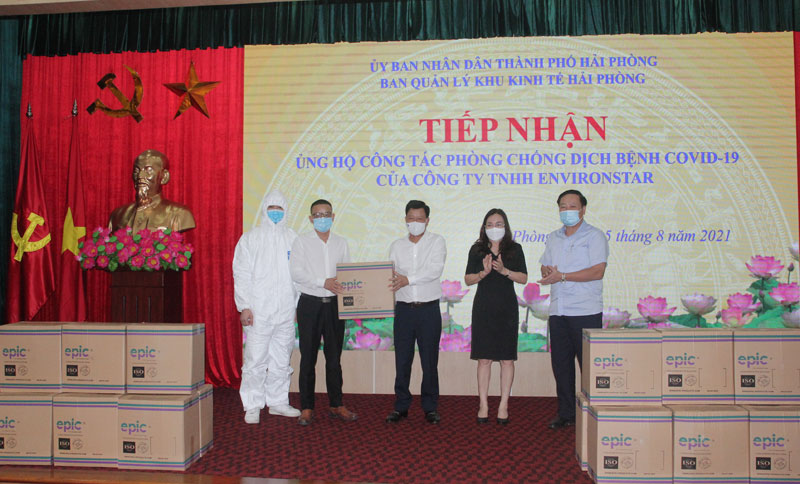 Phát biểu tại buổi tiếp nhận, đồng chí Lê Trung Kiên, Trưởng Ban Quản lý Khu kinh tế Hải Phòng cảm ơn và ghi nhận nghĩa cử cao đẹp của Công ty TNHH Environstar đã chung tay, góp sức cùng thành phố trong công tác phòng, chống dịch. Đồng chí khẳng định, thành phố và Ban Quản lý Khu Kinh tế Hải Phòng sẽ luôn đồng hành, dõi theo các doanh nghiệp và tạo điều kiện môi trường kinh doanh thuận lợi để doanh nghiệp phát triển. Đồng chí Trưởng Ban Quản lý Khu kinh tế Hải Phòng cũng chia sẻ với những khó khăn, vất vả của toàn ngành Y tế trong thời gian qua. Với trách nhiệm của mình, Ban Quản lý Khu kinh tế Hải Phòng sẽ luôn đồng hành cùng ngành y tế, giúp công cuộc chống dịch gặt hái thành công, đặc biệt là bảo vệ những cán bộ y tế trên tuyến đầu được an toàn.