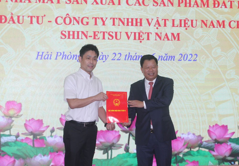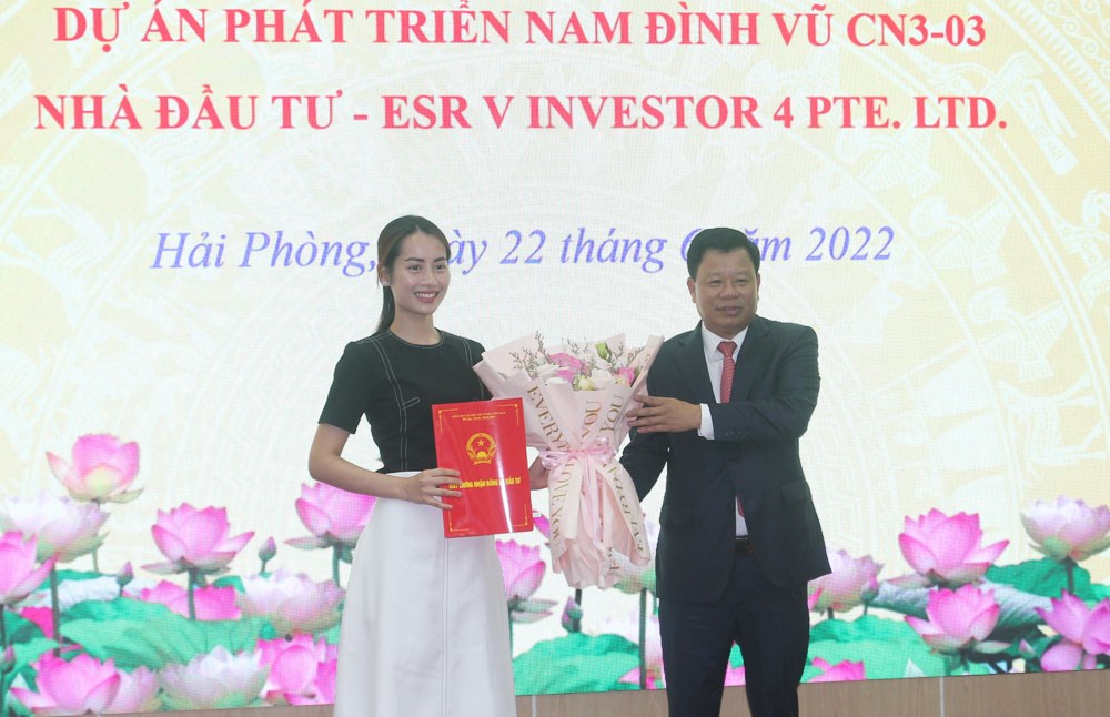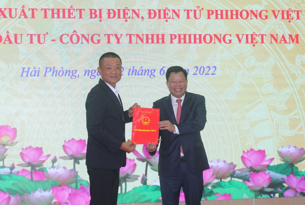 Tại Hội nghị, đồng chí Lê Trung Kiên, Trưởng Ban Quản lý Khu Kinh tế Hải Phòng đã trao Giấy chứng nhận đăng ký đầu tư cho dự án đầu tư xây dựng và kinh doanh kết cấu hạ tầng Khu công nghiệp Tiên Thanh, huyện Tiên Lãng và trao Giấy chứng nhận đăng ký đầu tư cho các dự án mới: Dự án sản xuất chế tạo bộ phận linh kiện hệ thống an toàn thụ động ô tô HMT Hải Phòng của Công ty TNHH Công nghệ vật liệu mới HMT (Hải Phòng) tại KCN An Dương; Dự án phát triển Nam Đình Vũ CN3-03 của nhà đầu tư ESR V Investor 4 Pte.Ltd tại Khu phi thuế quan và Khu công nghiệp Nam Đình Vũ (Khu 1); Dự án Trung tâm công nghiệp GNP Nam Đình Vũ của Công ty TNHH Classic Leaf Việt Nam tại Khu phi thuế quan và Khu công nghiệp Nam Đình Vũ (Khu 1); 2 dự án tăng vốn của Công ty TNHH PhiHong Việt Nam tại KCN An Dương và Công ty TNHH Vật liệu nam châm Shin-Etsu Việt Nam tại KCN Đình Vũ.
