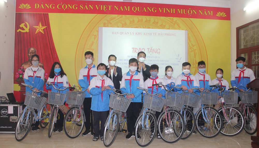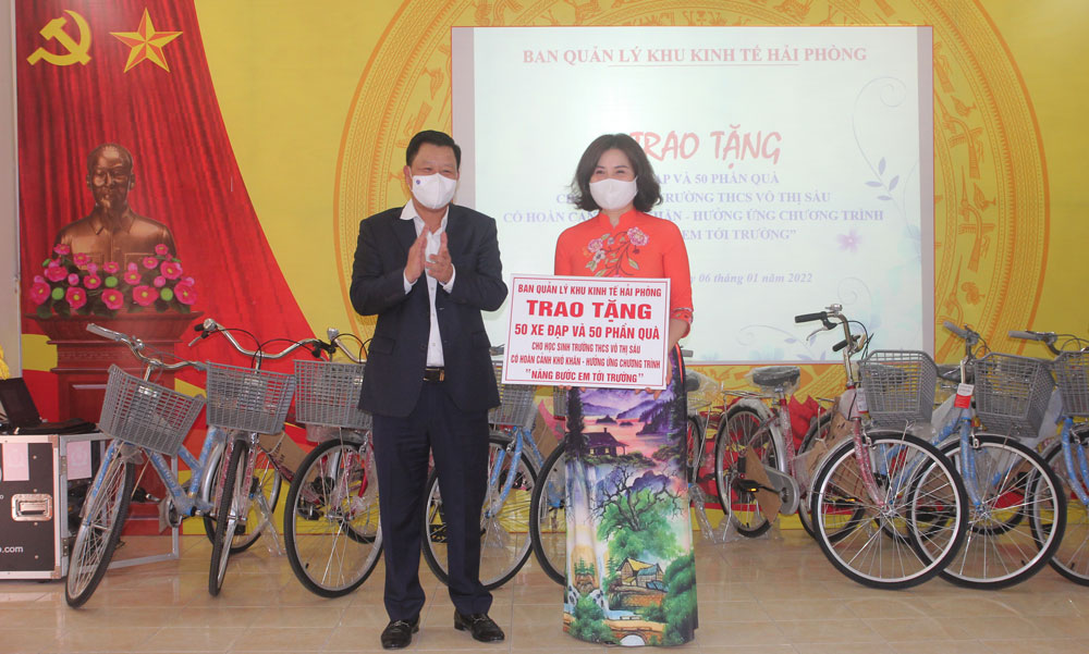 Tại Trường THCS Võ Thị Sáu (phường Niệm Nghĩa), Đoàn công tác của Ban Quản lý Khu Kinh tế Hải Phòng trao tặng cho nhà Trường 50 chiếc xe đạp và 50 suất quà cho học sinh nghèo có hoàn cảnh khó khăn vươn lên học giỏi. Đây là những món quà vô cùng ý nghĩa và thiết thực đem lại niềm vui, niềm phấn khởi, giúp các em học sinh có phương tiện đi lại, điều kiện học tập tốt hơn; qua đó, giúp các em học sinh nỗ lực vượt qua khó khăn, đạt thành tích cao trong học tập.