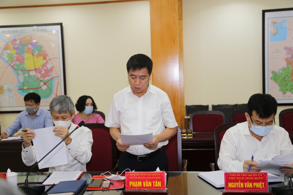 Sau khi nghe báo cáo của Ban Thường vụ Quận ủy Lê Chân và ý kiến phát biểu của các thành viên đoàn giám sát, đồng chí Cao Xuân Liên, Ủy viên Ban Thường vụ Thành ủy, Chủ tịch Ủy ban MTTQ Việt Nam thành phố nhấn mạnh: trong bối cảnh dịch COVID-19 diễn biến phức tạp, công tác kiểm tra, giám sát năm 2020 và 6 tháng đầu năm 2021 của Ban Thường vụ Quận ủy và MTTQ Việt Nam quận đã chuẩn bị báo cáo công phu cung cấp đầy đủ số liệu, có nhiều cố gắng làm thay đổi diện mạo đô thị quận góp phần phát triển kinh tế-xã hội thành phố; tổ chức các cuộc kiểm tra, giám sát cấp ủy các cấp. Công tác bổ nhiệm, bổ nhiệm lại, điều động, luân chuyển, quy hoạch, đào tạo… được thực hiện đúng quy trình theo đúng quy định của pháp luật hiện hành. Đồng chí đề nghị, thời gian tới, Ban Thường vụ Quận ủy tiếp tục quan tâm tăng cường chỉ đạo thực hiện công tác kiểm tra, giám sát của cấp ủy, MTTQ và các đoàn thể; đưa vào chương trình, kế hoạch giám sát cán bộ, đảng viên. Rà soát công tác tuyển dụng công chức; tiếp tục quan tâm công tác kiểm tra, giám sát cán bộ, đảng viên, khắc phục hạn chế trong công tác cán bộ; tập trung công tác phòng, chống dịch COVID-19 trên địa bàn quận; giải quyết khách quan, theo đúng quy định của pháp luật vụ việc tại trường THCS Ngô Quyền. Ban Thường vụ Quận ủy tiếp thu ý kiến của các thành viên đoàn công tác bổ sung, hoàn thiện báo cáo gửi Ban Thường trực MTTQ Việt Nam thành phố.