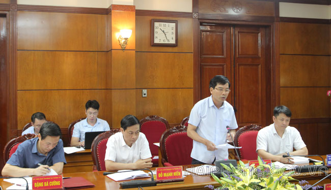 Phó Chủ tịch Thường trực UBND thành phố Nguyễn Xuân Bình trình bày Dự thảo Chương trình hành động thực hiện Nghị quyết số 45 tại cuộc họp