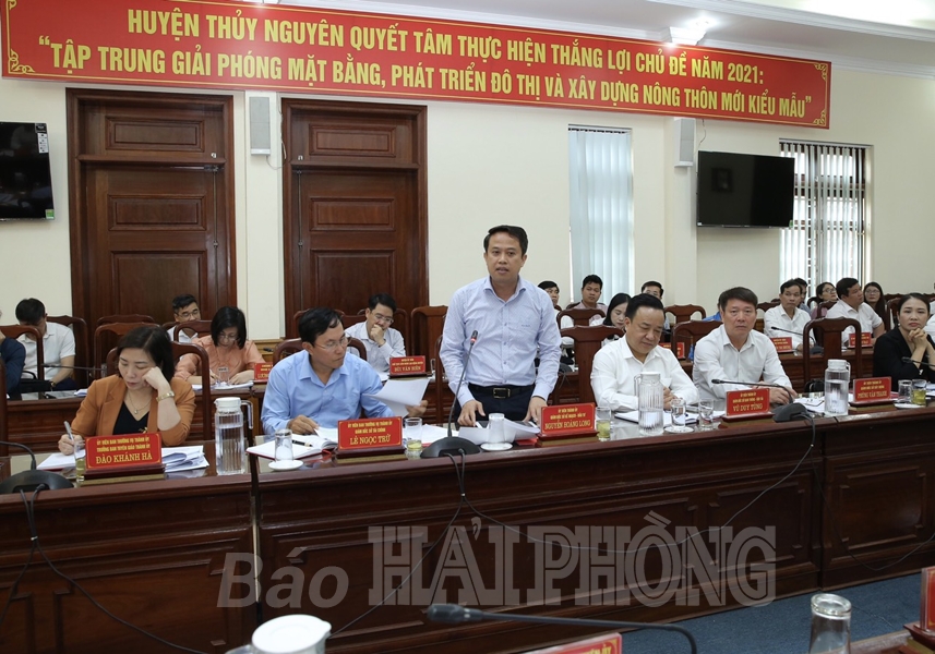 Đồng chí Lê Anh Quân, Phó chủ tịch Thường trực UBND thành phố đề nghị huyện Thủy Nguyên quan tâm, sát sao hơn đến công tác giải phóng mặt bằng. Với các dự án dự kiến triển khai, hoàn thành trong năm 2021, khối lượng công việc giải phóng mặt bằng còn rất lớn, nhất là tại Khu đô thị Bắc sông Cấm, dự án tuyến đường 359 (giai đoạn 1 và 2).