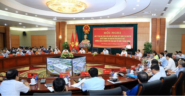 Phát biểu chào mừng hội nghị, đồng chí Lê Văn Thành, Bí thư Thành ủy, Chủ tịch HĐND thành phố thông tin tới các đại biểu kết quả phát triển kinh tế- xã hội 2,5 năm qua và kết quả bước đầu thực hiện Nghị quyết số 18 và 19 của Trung ương của thành phố Hải Phòng, khẳng định: sau hơn 6 tháng triển khai, việc thực hiện Nghị quyết số 18-NQ/TƯ và Nghị quyết số 19-NQ/TƯ có kết quả bước đầu quan trọng như: bố trí đồng chí trưởng ban tuyên giáo kiêm giám đốc trung tâm bồi dưỡng chính trị tại các quận, huyện; bố trí bí thư cấp ủy đồng thời là chủ tịch UBND tại 5 xã, phường, thị trấn và huyện Bạch Long Vỹ; 2 huyện bố trí trưởng ban dân vận đồng thời là chủ tịch Ủy ban MTTQ; thực hiện tiết kiệm chi thường xuyên, tăng chi đầu tư với tỷ lệ chi thường xuyên 40%, chi đầu tư 60%; đã giảm 16 phòng chuyên môn thuộc sở, giảm 1 chi cục; tại 21 chi cục giảm 3 phòng chuyên môn thuộc chi cục…Trong quá trình thực hiện hai nghị quyết này, Hải Phòng cũng có những khó khăn nhất định. Do vậy, việc Ban Tổ chức Trung ương tổ chức hội nghị góp ý vào các dự thảo quy định về công tác tổ chức, tinh gọn bộ máy của các cơ quan Đảng tại Hải Phòng hết sức có ý nghĩa, tạo điều kiện để các địa phương cùng trao đổi kinh nghiệm trong quá trình thực hiện và nêu những vấn đề khó khăn, vướng mắc cần trung ương tháo gỡ.