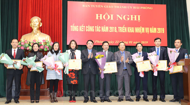 Nhân dịp này, UBND thành phố tặng Bằng khen cho 3 tập thể và 5 cá nhân; 18 tập thể và 21 cá nhân có thành tích xuất sắc trong công tác tuyên giáo năm 2018 được nhận Giấy khen của Ban Tuyên giáo Thành ủy.