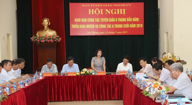 Sáng 12-7, Ban tuyên giáo Thành ủy tổ chức hội nghị giao ban công tác tuyên giáo 6 tháng đầu năm, thông qua nhiệm vụ giải pháp trọng tâm 6 tháng cuối năm 2019. Đồng chí Đào Khánh Hà – Thành ủy viên, Trưởng ban tuyên giáo Thành ủy chủ trì hội nghị.