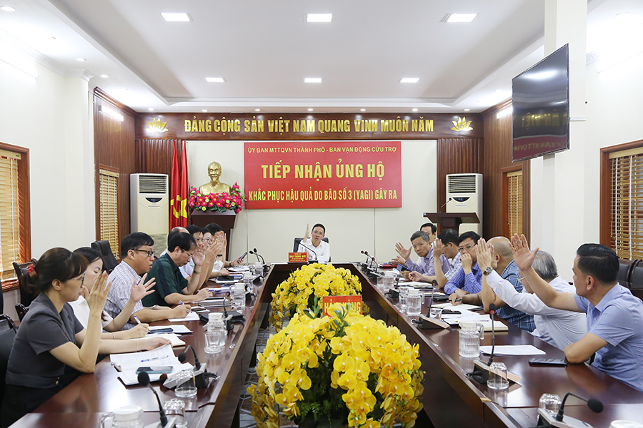Sáng 14/10, Ban Vận động cứu trợ thành phố tổ chức cuộc họp xin ý kiến phân bổ, hỗ trợ Nhân dân khắc phục thiệt hại do Bão số 3. Đồng chí Đào Trọng Đức, Ủy viên Ban Thường vụ Thành ủy, Chủ tịch Ủy ban MTTQ Việt Nam thành phố – Trưởng Ban Vận động cứu trợ thành phố chủ trì cuộc họp. Tham dự có các thành viên Ban Vận động cứu trợ thành phố.
