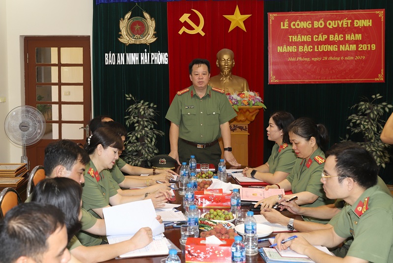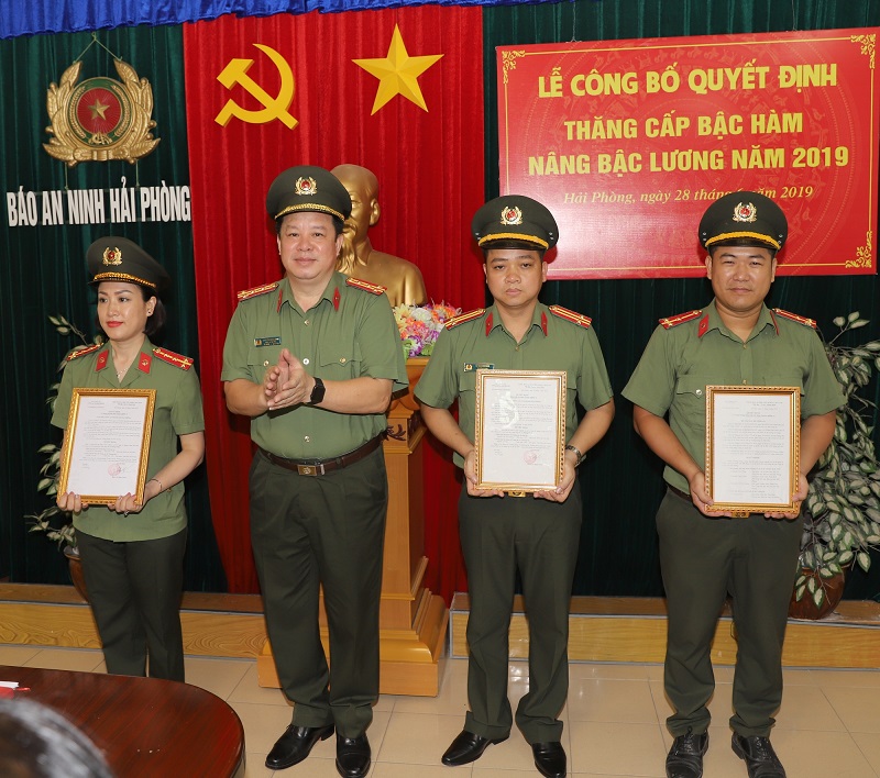Đồng chí Phó bí thư Đảng ủy, Phó giám đốc CATP đề nghị trong thời gian tới, các đồng chí được thăng cấp bậc hàm, nâng bậc lương tiếp tục phấn đấu, rèn luyện, giữ vững phẩm chất, không ngừng trau dồi trình độ nghiệp vụ, nêu cao tinh thần trách nhiệm, tăng cường hiệu quả công tác, góp phần vào việc khẳng định vị thế, đóng góp vào sự phát triển chung của Báo An ninh Hải Phòng, quyết tâm hoàn thành xuất sắc nhiệm vụ được giao.