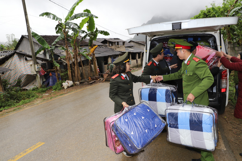 Thành viên trong đoàn vận chuyển những món quà đến với các em học sinh tỉnh Cao Bằng
