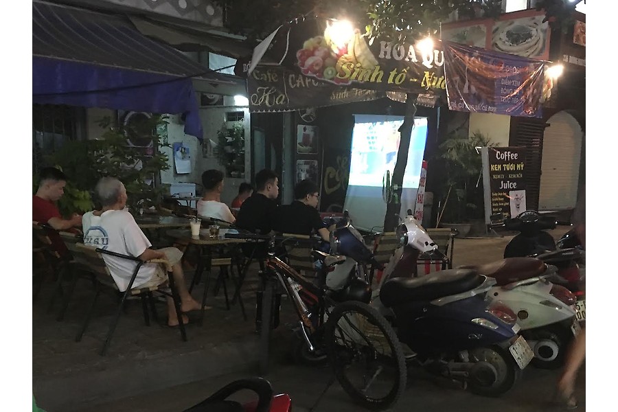 Vào mỗi trận đấu, tiếng người cổ vũ, hò reo mỗi khi bàn thắng được ghi làm nhốn nháo cả khu phố. Tại nhiều điểm, vỉa hè dành để xếp ghế ngồi của khách. Tất cả xe máy được xếp xuống lòng đường. Đan xen giữa những tiếng reo hò, cổ vũ là những tiếng hô “dô-dô” chúc tụng và liên tục “chén chú, chén anh” được đưa lên miệng. Trận bóng càng hấp dẫn, lượng bia rượu bán ra càng tăng. Không chỉ ở nhà hàng, quán ăn, nhiều điểm xem bóng đá được mở ra tại quán bar, karaoke, các điểm cà-phê shisha thu hút đông khách là thanh, thiếu niên.