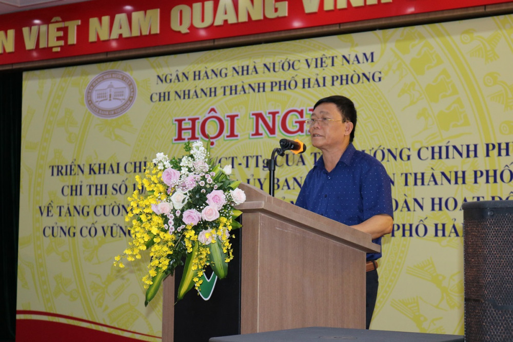 Phó Giám đốc Ngân hàng nhà nước chi nhánh Hải Phòng Nguyễn Hồng Vinh báo cáo tại hội nghị